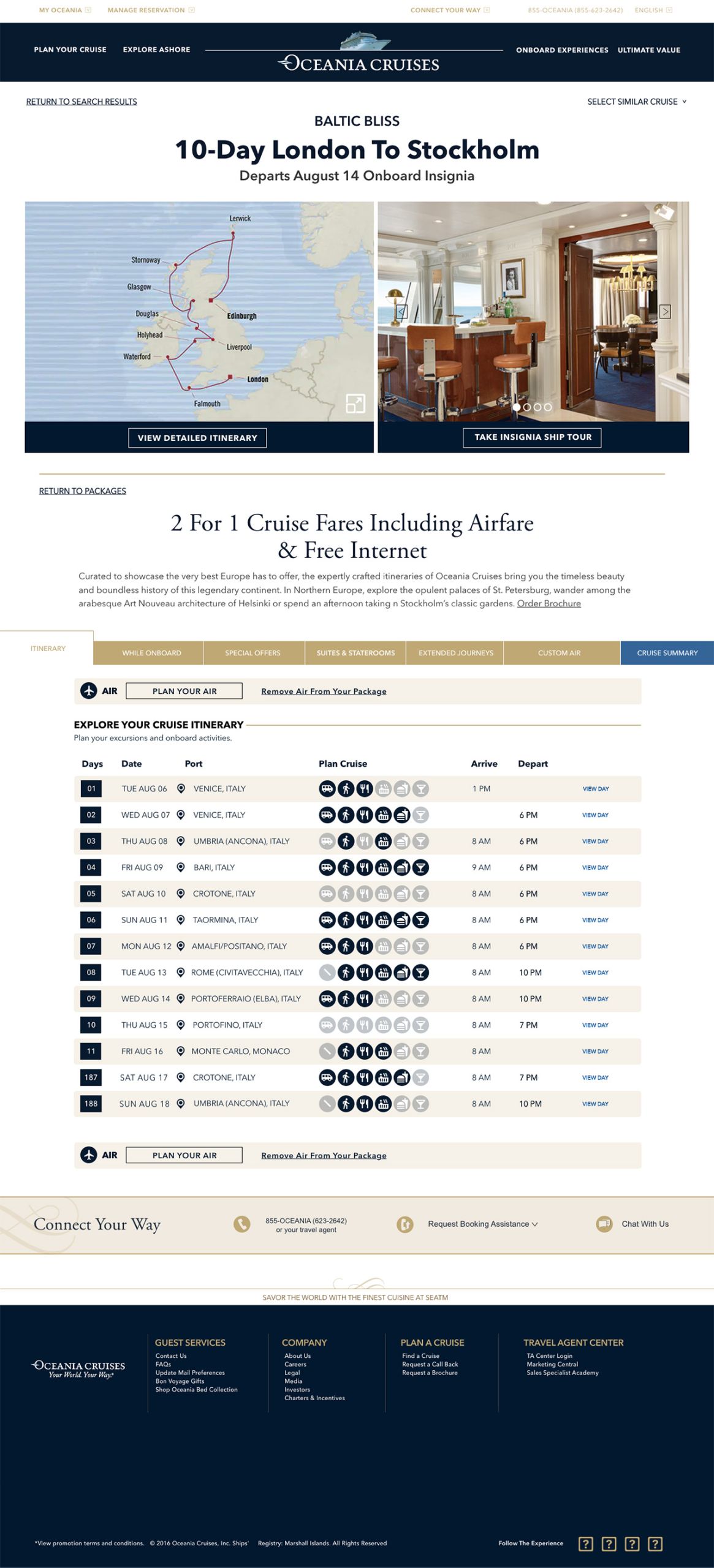 Digital transformation of the Oceania Cruiseline Website and end-to-end cruise booking process.